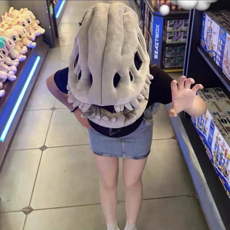 【Unique Dinosaur Skull】: The headpiece features a fun dinosaur skull design, ensuring a standout presence at Halloween festivities.
